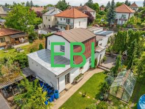 Prodej samostatného zděného rodinného domu ze 70tých let minulého století (přístavba v r. 1990) v rezidenční části Dolních Počernic s velkou zahradou. Dům je dvojpodlažní o dispozici 4+1. Přízemí: byt 2+1(84m2), předsíň, jídelna, velký obývací pokoj 33,6m2, ložnice, šatna, jídelní kout, technická místnost, spíž + vstup do sklepa. 1. patro: 2 pokoje 2x10m2, koupelna s vanou a WC, terasa 16,6m2.Vstup na pozemek je z ulice Pilníkovské. Poslední rekonstrukce nemovitosti je z let 2000 a 2023. Stavebně technický stav dobrý. Sítě – voda obecní a kanalizace, elektro, plyn. Topení ústřední plynové, kondenzační kotel v technické místnosti. Na pozemku se nachází zděná garáž 22 m2, další zděná stavba 5 místností o celkové výměře 40m2 – sklad zahradního vybavení a techniky. Na zahradě jsou vzrostlé ovocné stromy, skleník, bazén. Pozemek má tvar obdélníku s jedním vstupem z ulice, nachází se v původní rezidenční zástavbě Dolních Počernic s dostatkem zeleně v okolí. V obci se nachází veškerá možná občanská vybavenost. Doporučujeme. Centrum Prahy 10 km. Vlak 6 minut chůze, Bus 500m stanice. Velice dobré dopravní napojení na Jižní spojku dálnic D11 a D10. Hypoteční úvěr zajistíme.